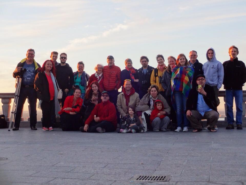 Nous serons donc quelques dizaines au sommet à attendre le soleil (version 2014 du Temple du soleil de Tintin, sans mise à mort ou d’éclipse évidemment). Certains plus discrets que d’autres. Plus ou moins zen. Plus ou moins jeunes. Plus ou moins à jeun! Plus ou moins gelés. Plus ou moins admiratifs de la scène naturelle.
