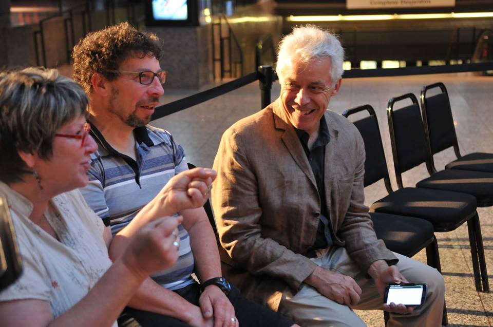 Le contraste entre la tranquillité de la rue et le fourmillement feutré de l’intérieur est frappant. L’équipe se prépare: les gens de la technique, les chroniqueurs, Marie-France Bazzo, tout le monde est affairé et concentré, mais tout de même accueillant. Drôle d’endroit quand même, pour enregistrer une émission: directement dans le corridor qui mène à la rue Ste-Catherine, presque en face de la salle Maisonneuve. Quelques minutes pour saluer M. Desautels, puisque Benoit, mon frère, est devenu l’un de ses collaborateurs sur la route.