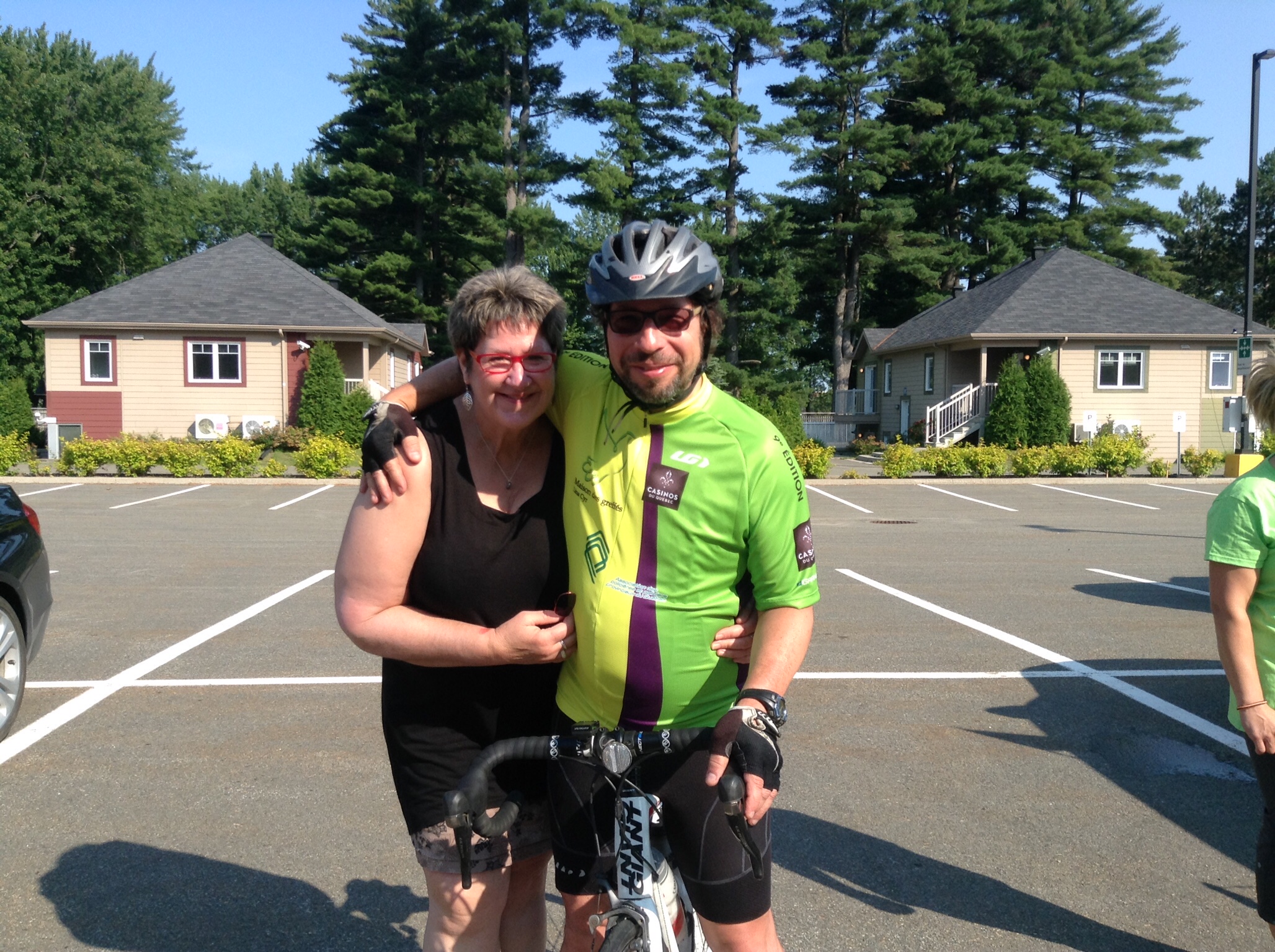 Tout au long du parcours, puisque rouler en peloton serré permet ce genre de rencontres, mentionnons les nombreuses et agréables conversations avec de nouveaux amis de l’Outaouais, de la Gaspésie, de l’Abitibi, de la Beauce et même d’une vieille connaissance de l’époque de la garderie des enfants … de Anjou! Des témoignages drôles et touchants de certains qui se sont fait dire, sérieusement, qu’ils pourraient mourir à brève échéance et qui ont reçu, qui un cœur, qui un foie ou encore des poumons et qui célèbrent la vie en roulant avec un entrain… entraînant.